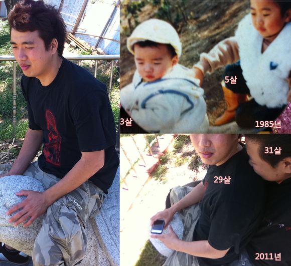 1985년쯤, 아마 3살과 5살이었던 형제, 26년만인 2011년 29살과 31살이 되어