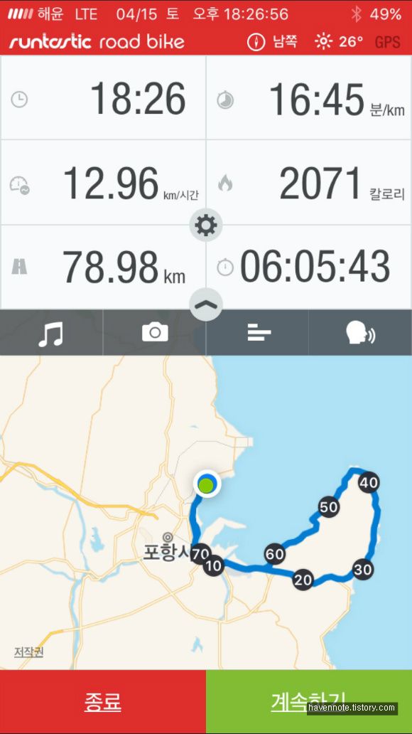 79km, 6시간 5분.